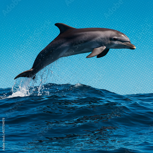 Fototapeta premium Magnificent Dolphin Leaps: A Photorealistic Pop Art Ocean Spectacle in 8K Resolution.