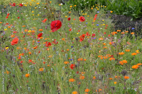 Fototapeta premium Magnificent flower borders with lots of native wildflowers at 16th century...