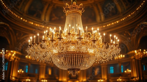 © MUMTAZ, Obraz premium Magnificent Golden Chandelier in Opulent Hall
