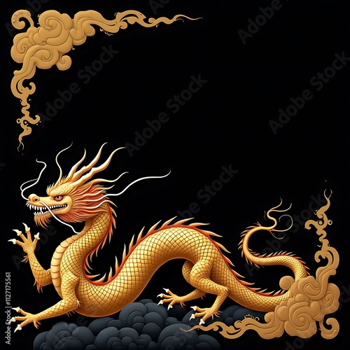 Obraz premium Magnificent Golden Dragon Art: Chinese Mythology and Eastern Culture Depiction