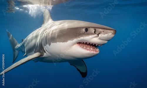 Naklejka premium Magnificent great white shark swimming gracefully beneath the ocean surface