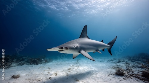 Obraz premium Magnificent hammerhead shark gracefully gliding through ocean's tranquil waters