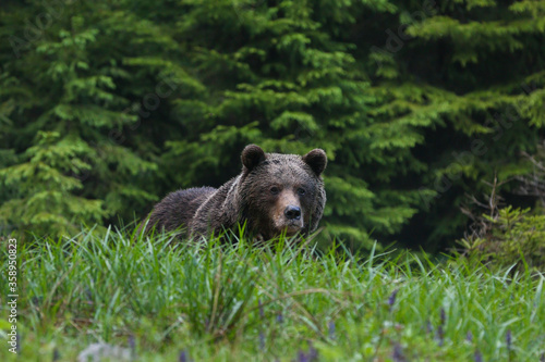 Fototapeta premium Magnificent male brown bear (ursus arctos) on meadow natural environment