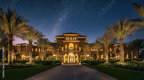 © minahus, Fototapeta premium Magnificent Mansion under Starry Night