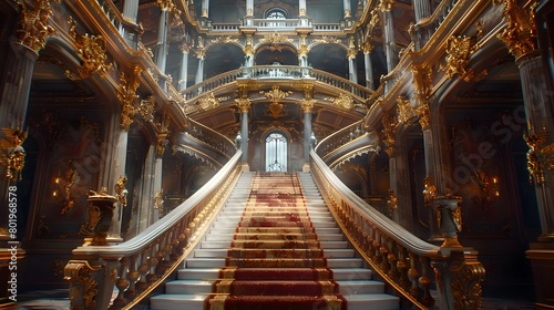 © Naput, Obraz premium Magnificent Marble Staircase Leads to Opulent Grandeur in Historic Palace