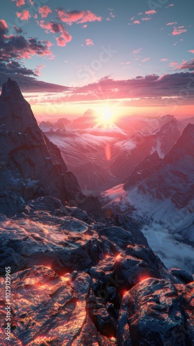 © BROTHER, Obraz premium Magnificent mountainous vista adorned with the gentle colors of sunrise, 4K hyperrealistic photo