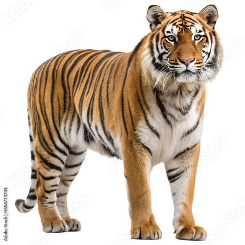© kathrine, Fototapeta premium Magnificent Tiger Portrait A Striking Feline with Intense Gaze and Majestic Stripes in a Wildlife Setting against Transparent Backdrop