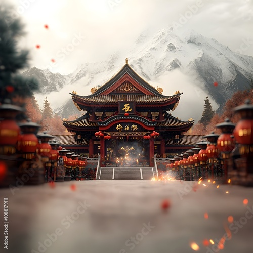 © Bos Amico, Fototapeta premium Magnificent Traditional Chinese Temple Adorned for Lunar New Year Festivities