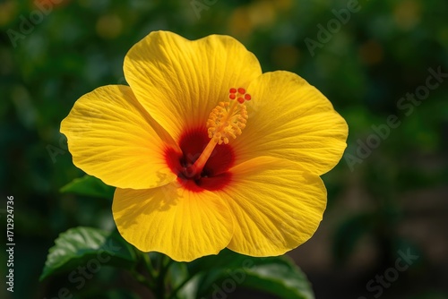 © AkuAku, Fototapeta premium Magnified view of a bright yellow hibiscus blossom
