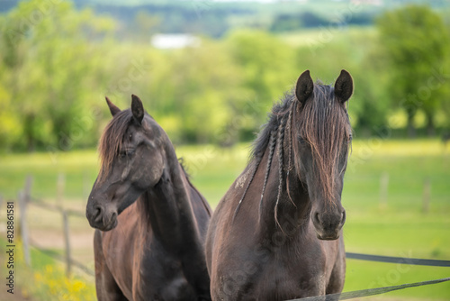 Obraz premium Magnifique cheval de race frison dans un élevage