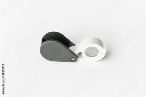 © Lifestyle Graphic, Obraz premium Magnifying glass for diamonds or see the amulet Isolated on a White Background.