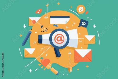 © Iftikhar alam, Obraz premium Magnifying Glass on Envelope, Detailed Examination of Important Document, A depiction of a successful email marketing campaign reaching its target audience, AI Generated