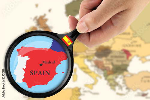 © viperagp, Fototapeta premium Magnifying glass over a map of Greece
