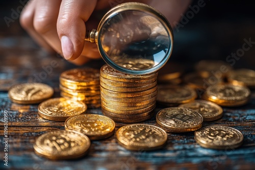 © KADER, Fototapeta premium Magnifying Glass Over a Stack of Documents Held by a Hand Representing Analysis and Insight