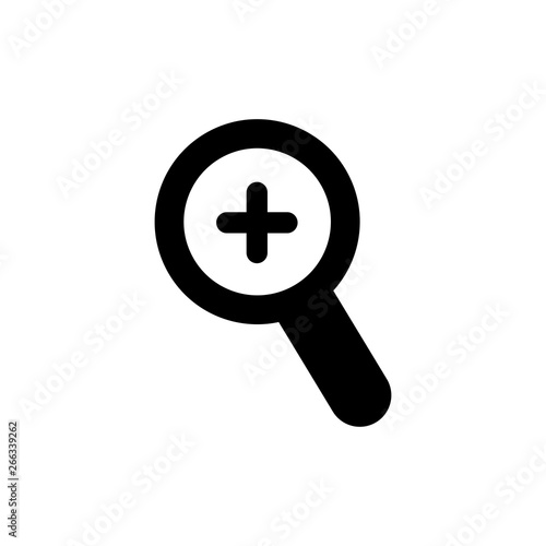 © Stock Ninja Studio, Fototapeta premium Magnifying Glass Plus Icon In Flat Style Vector For App, UI, Websites. Black Icon Illustration