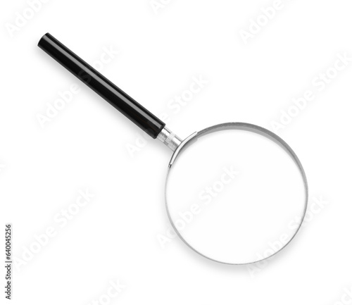 Fototapeta premium Magnifying glass with handle isolated on white, top view