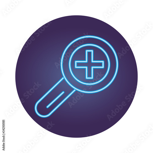 Obraz premium magnifying glass with medical cross symbol neon style