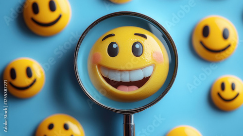 © Niks Ads, Obraz premium magnifying glass with smiley faces