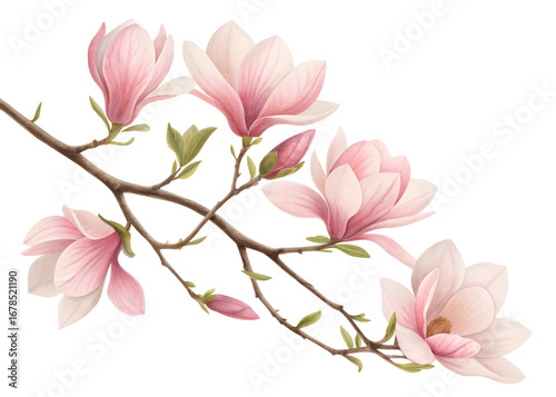 Fototapeta premium Magnolia Branch PNG – Elegant Watercolor Botanical Clipart for Wedding &...
