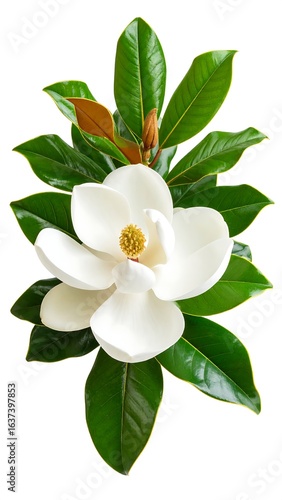 © Ulfa, Obraz premium Magnolia flower and leaves (1)
