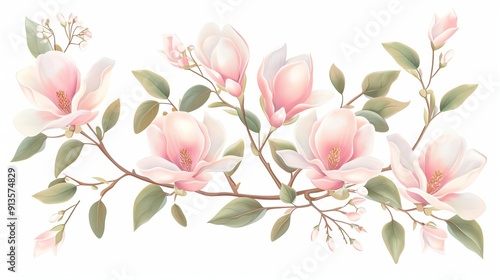 © Pachara, Naklejka premium Magnolia flower bouquet, garden arrangement element, vintage botanical illustration, delicate hues, isolated on white background
