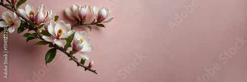 © Anna, Obraz premium Magnolia flower on a branch with soft pink background for nature concept.