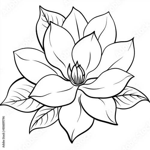 Fototapeta premium Magnolia flower outline illustration coloring book page design,Magnolia...