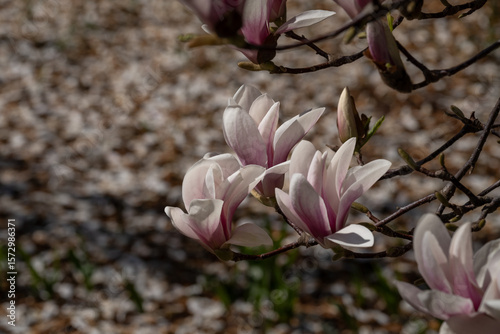 © Nataliia, Obraz premium Magnolia Flowers and Petal Carpet in Early Spring