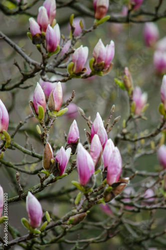 Fototapeta premium Magnolia flowers blooming on the tree branches