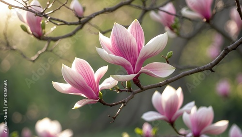 Fototapeta premium Magnolia flowers blooming on tree branch in spring.