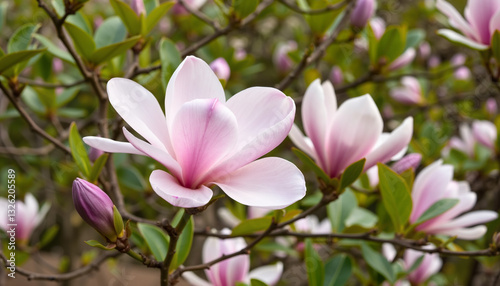 Fototapeta premium Magnolia Flowers Blooming on Tree Branches