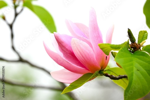 Naklejka premium Magnolia flowers. Nagnoliaceae deciduous tree. The flowering period is from...