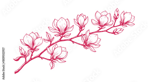 © Liveline, Naklejka premium Magnolia flowers on a branch, drawn by hand as a vector outline for decorative design.