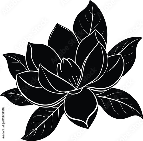 Obraz premium Magnolia Silhouette Vector | Elegant Flower Design for Nature and Floral...