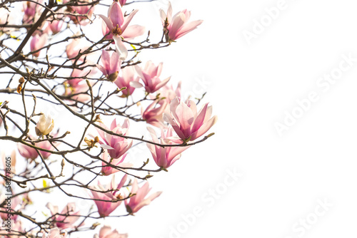 © xiaoliangge, Fototapeta premium magnolia spring branch isolated on white background