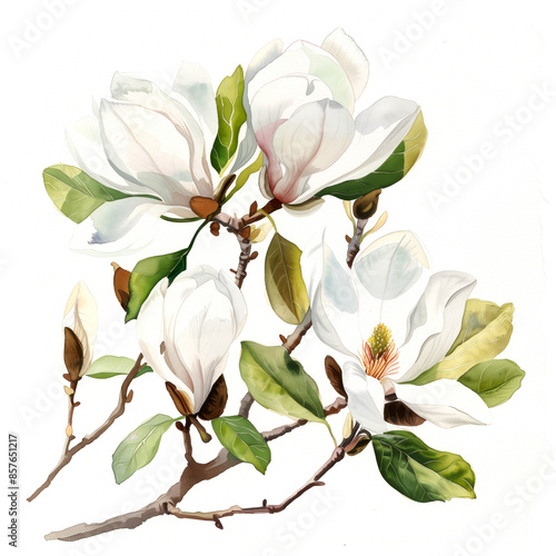 Obraz premium Magnolia Tree (Detail) Watercolor Illustration