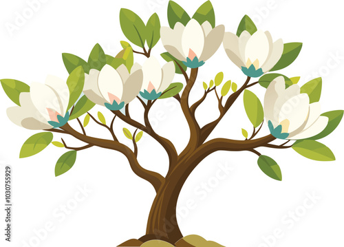 Obraz premium Magnolia tree Isolated flat vector illustration