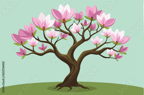 © TA graphic design, Obraz premium Magnolia tree Isolated flat vector illustration