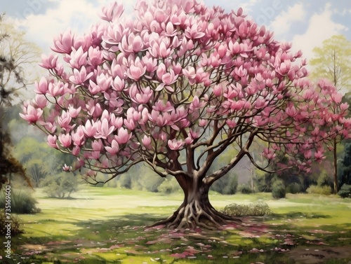 © Generative Ai, Fototapeta premium Magnolia tree with pink flowers