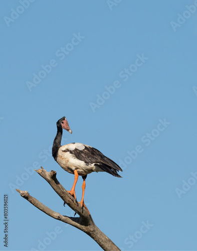 Fototapeta premium magpie goose (anseranas semipalmata ) perching on dead tree in Queensland, Australia.