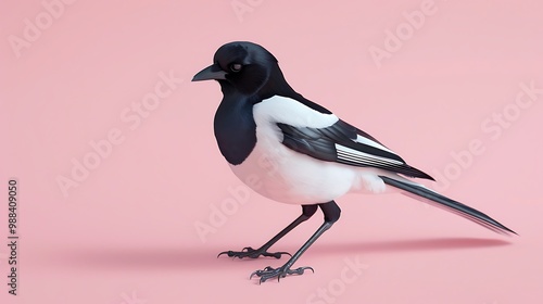 Obraz premium magpie on pink background