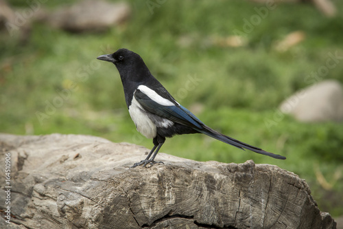 © Gregory Johnston, Obraz premium Magpie perched on log.