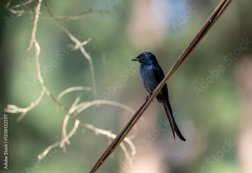 © константин константи, Naklejka premium Magpie Shama thrush hunting on a sunny day in Thailand
