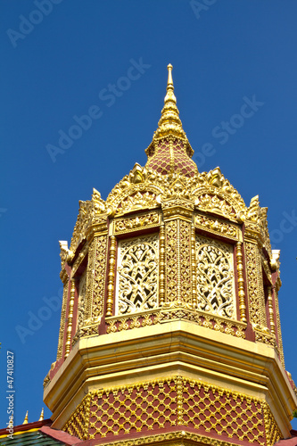 © jukree, Fototapeta premium Maha Chedi Chaimongkhol, White pagoda in thai temple at Roi Et P