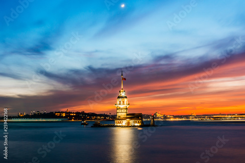 Fototapeta premium Maiden's Tower with sunset sky in Istanbul, Turkey (KIZ KULESI - USKUDAR)