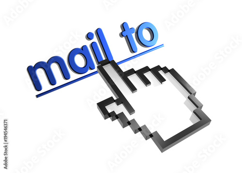 © Yuriy Pankratov, Obraz premium Mail to. Stylized hand pointer on link. 3D render. Isolated on white.