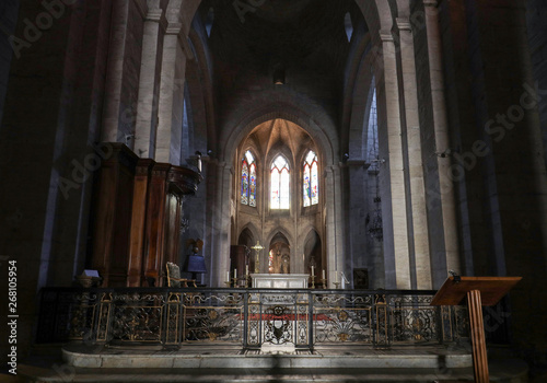 Fototapeta premium Main nave and altar in Saint Trophime Cathedral in Arles, France....