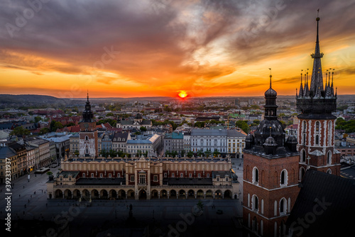 © Daniel Turbasa, Naklejka premium Main Square in Krakow at sunset, Poland