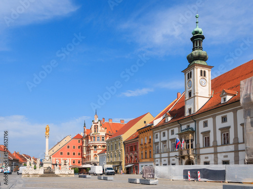Obraz premium Main square in Maribor city, Slovenia with historic architecture and buildings