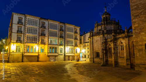 © josemiguelsangar, Fototapeta premium Main square of the city of Lugo at night with picturesque buildings and Gothic cathedral, Galicia.